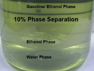 Phase separation occurs when ethanol-blended gasoline absorbs too much water.